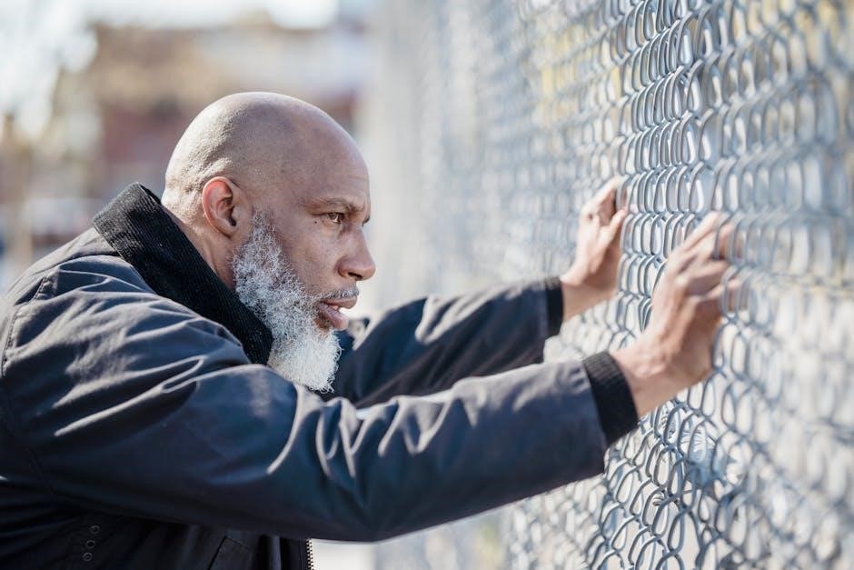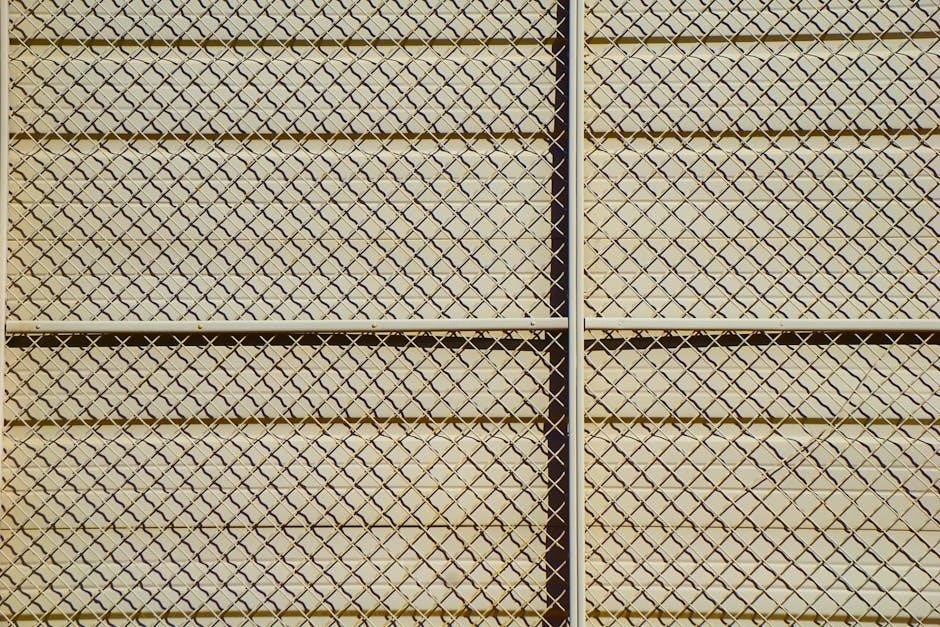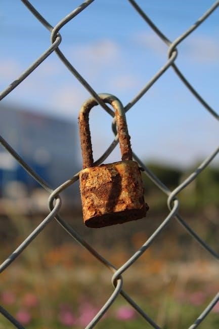 Rust prevention, especially on galvanized or non-coated components, is key. Applying protective coatings or paints extends the fence’s lifespan. The PDF may detail specific repair techniques for common problems, ensuring a durable and secure perimeter.